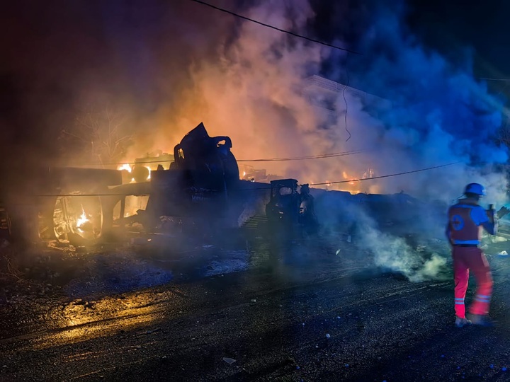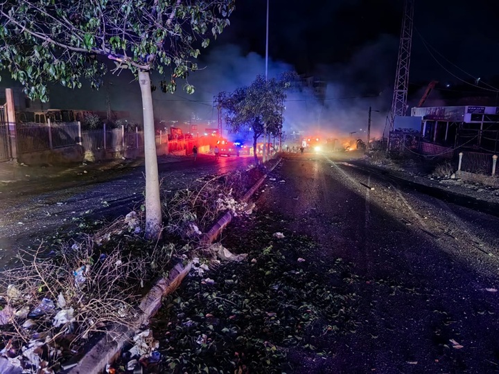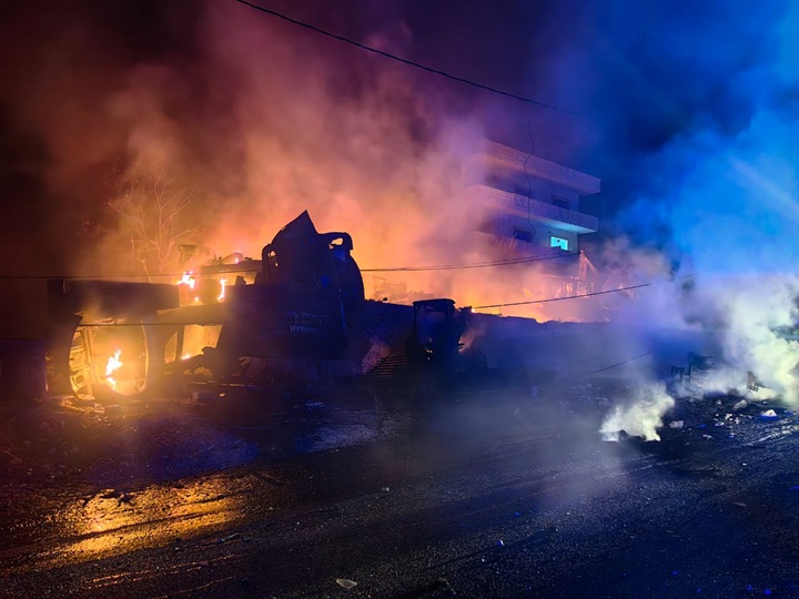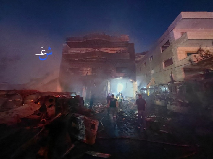 كما وافاد مراسل المنار عن احتراق مبنى تابع لأحد معارض الجرافات في المصيلح جراء الغارات الجوية المعادية التي استهدفت المنطقة.