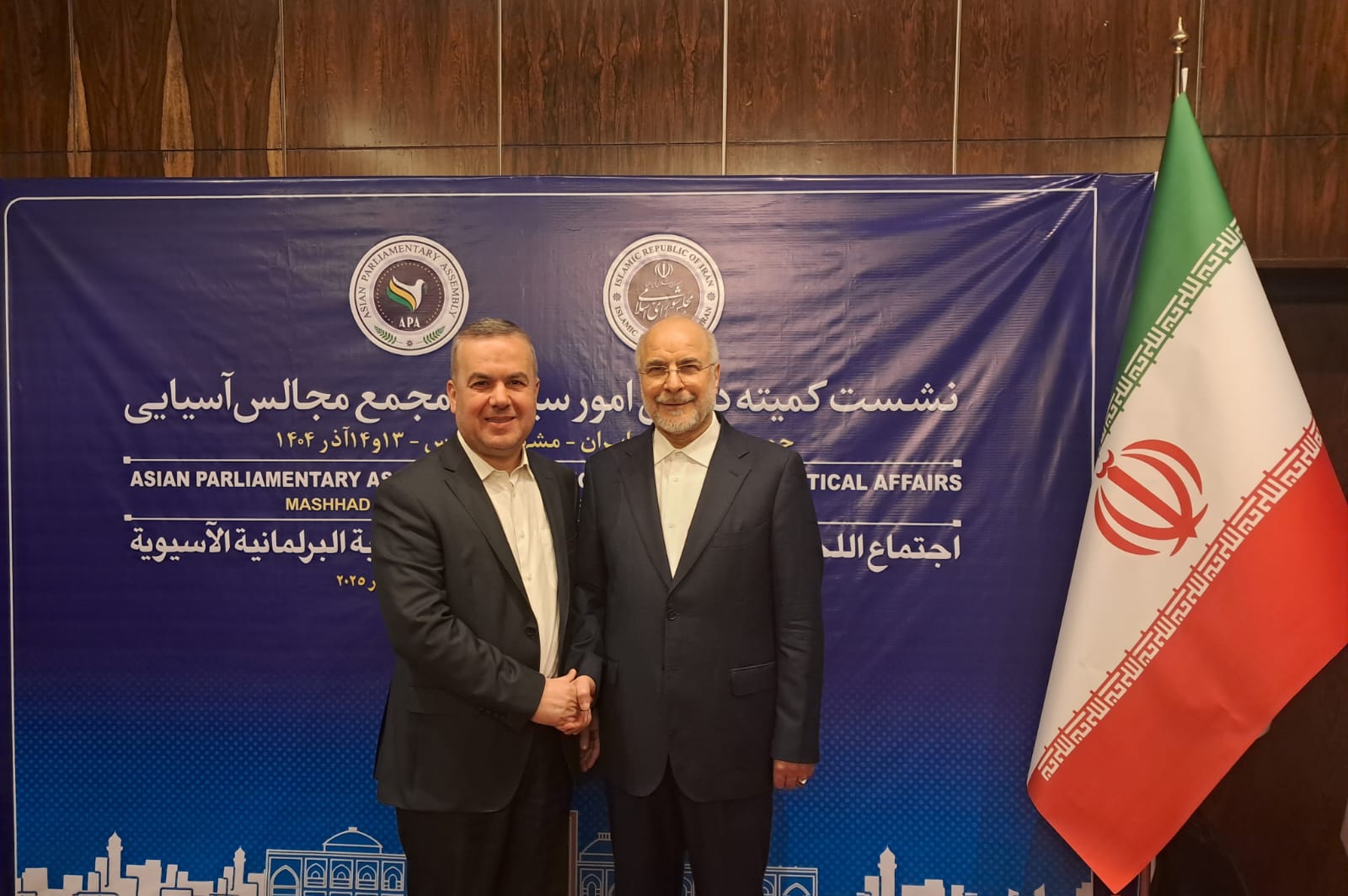 والتقى الوفد رئيس مجلس الشورى الإيراني محمد باقر قاليباف الذي افتتح الجلسة، ونقل إليه تحيات دولة رئيس مجلس النواب اللبناني نبيه بري، وشكر له مواقفه الداعمة للبنان، بدوره أكد قاليباف على الموقف الثابت لإيران بدعم لبنان ووجه تحيته لرئيس المجلس.