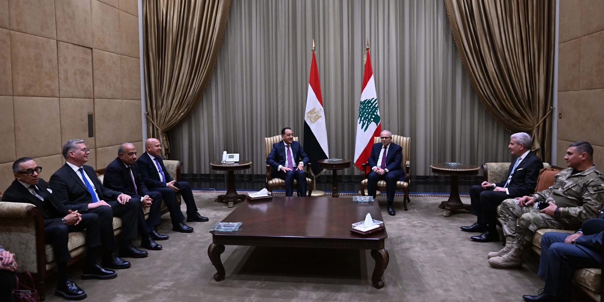 والتقى رئيس الوزراء المصري رئيس الحكومة اللبنانية نواف سلام في السراي الحكومي.