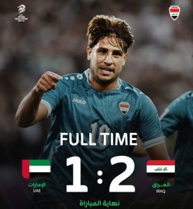 انتزع منتخب العراق بطاقة العبور إلى الملحق للتصفيات المؤهل إلى نهائيات كأس العالم لكرة القدم 2026، من ضيفه الإماراتي بفوزه عليه (2-1) يوم الثلاثاء، في لقاء الإياب للملحق الآسيوي. ووضع اللاعب الإماراتي كايو الأبيض في المقدمة بهدف سجله عند الدقيقة 52 بتسديدة من داخل منطقة الجزاء. ورد العراقي مهند علي كاظم بهدف التعادل بحلول الدقيقة 66 بتسديدة رأسية في الدقيقة (66) ومن ثم اقتنص العراقي أمير العماري هدف الفوز "لأسود الرافدين" في الوقت القاتل في الدقيقة 17 المحتسبة بدلا من الضائع من ركلة جزاء احتسبها حكم المباراة الياباني يوسوكي أراكي الذي أضاف 10 دقائق إضافية، وبعد العودة إلى تقنية الفيديو "VAR" على ملعب البصرة الدولي.
