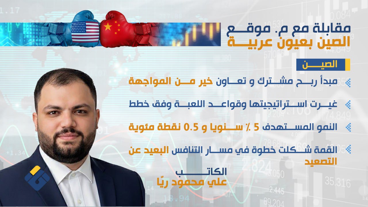 بدوره مدير موقع الصين بعيون عربية الكاتب علي محمود ريّا رسم مشهد لقاء ترمب – جين بينغ ، متوقفا عند الحال و المرتجى و المتوقع اقتصاديا ما بعد لقاء القمة مؤكدا ، ان اللقاء شكل محطة مهمة في العلاقات الاقتصادية و التجارية بين البلدين و عالميا و أن الصين دائماً ما تؤكد على مبدأ ” الربح المشترك والتعاون بدلاً من المواجهة “.